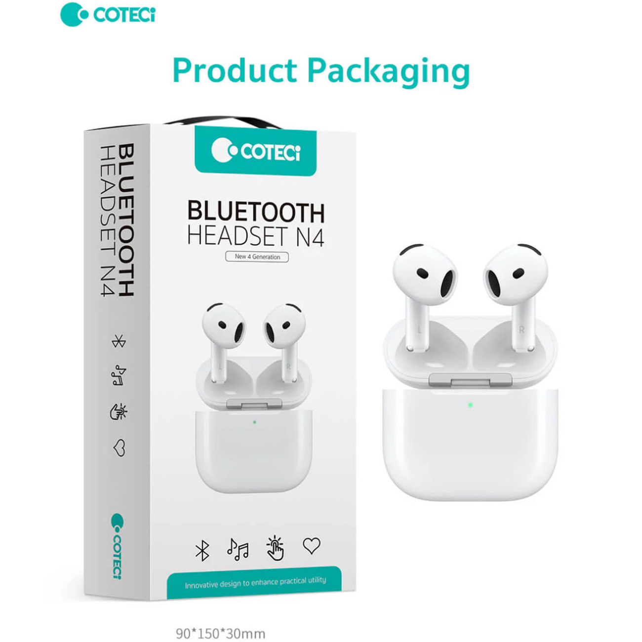 | ابعاد | ایرباد: 21.6 × 19.8 × 25.4 میلیمتر,کیس: 50.1 × 46.2 × 21.2 میلیمتر |