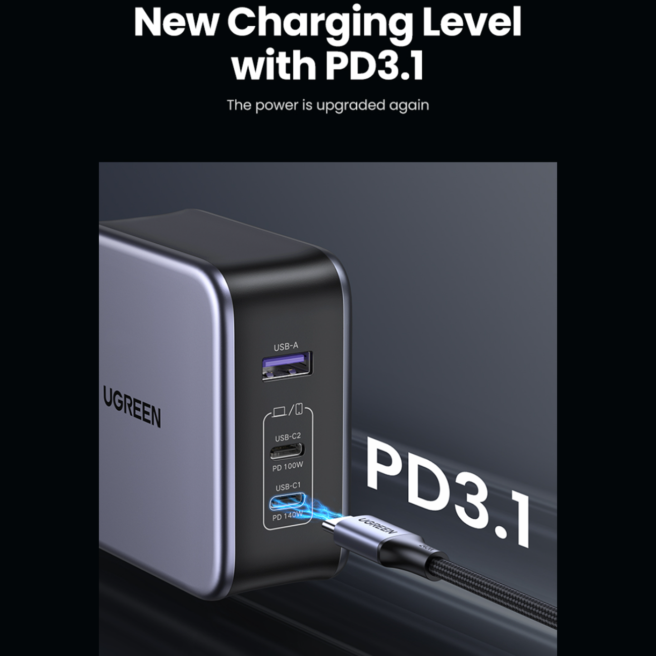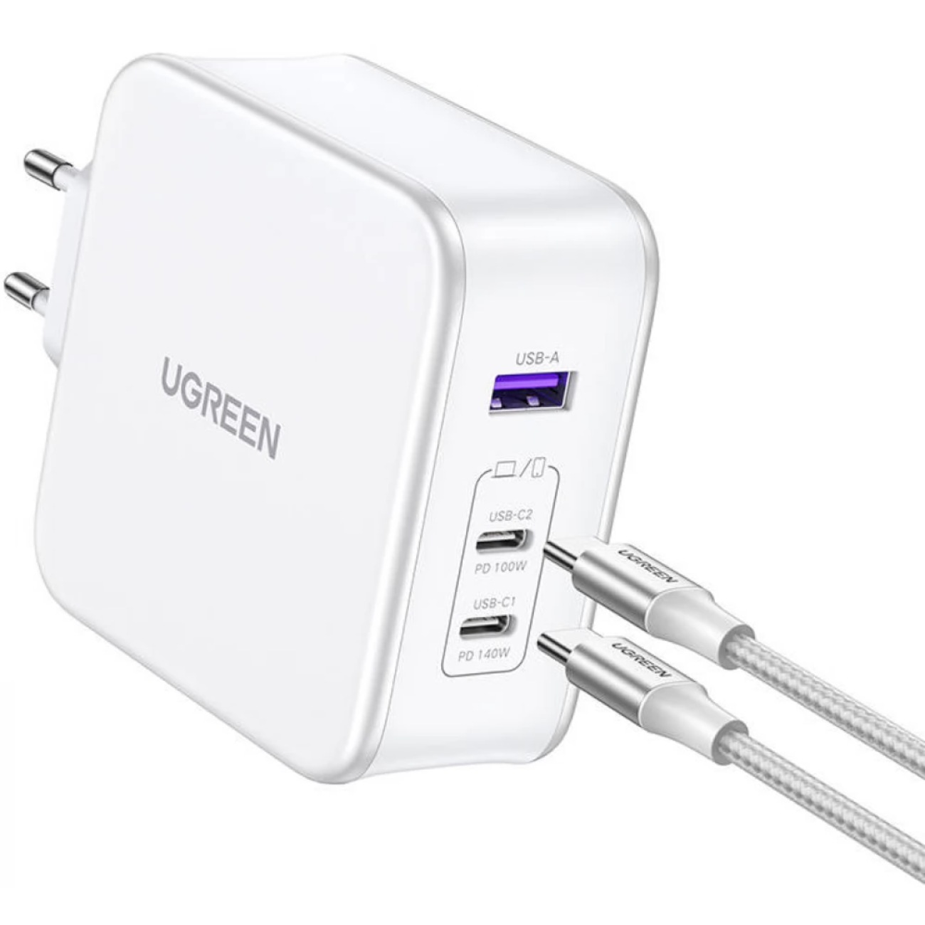 شارژر دیواری یواسبی و تایپسی فست شارژ 140 وات یوگرین Ugreen CD289 90549 با کابل دوسر تایپسی