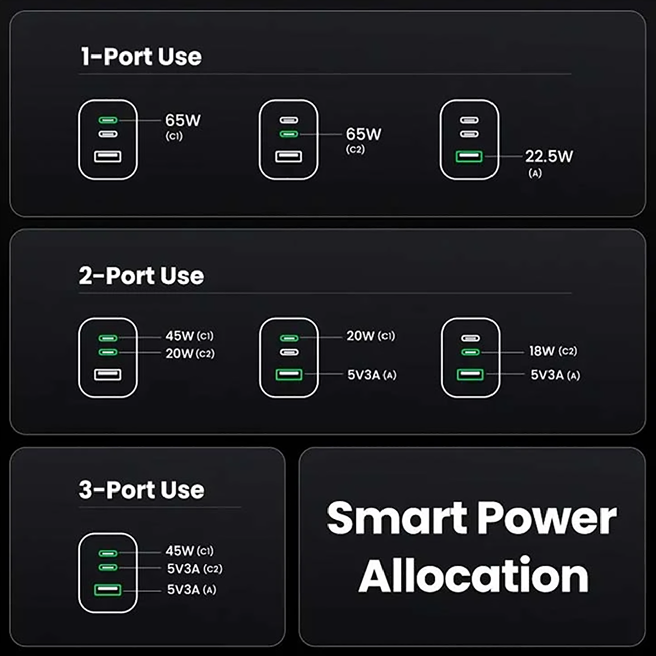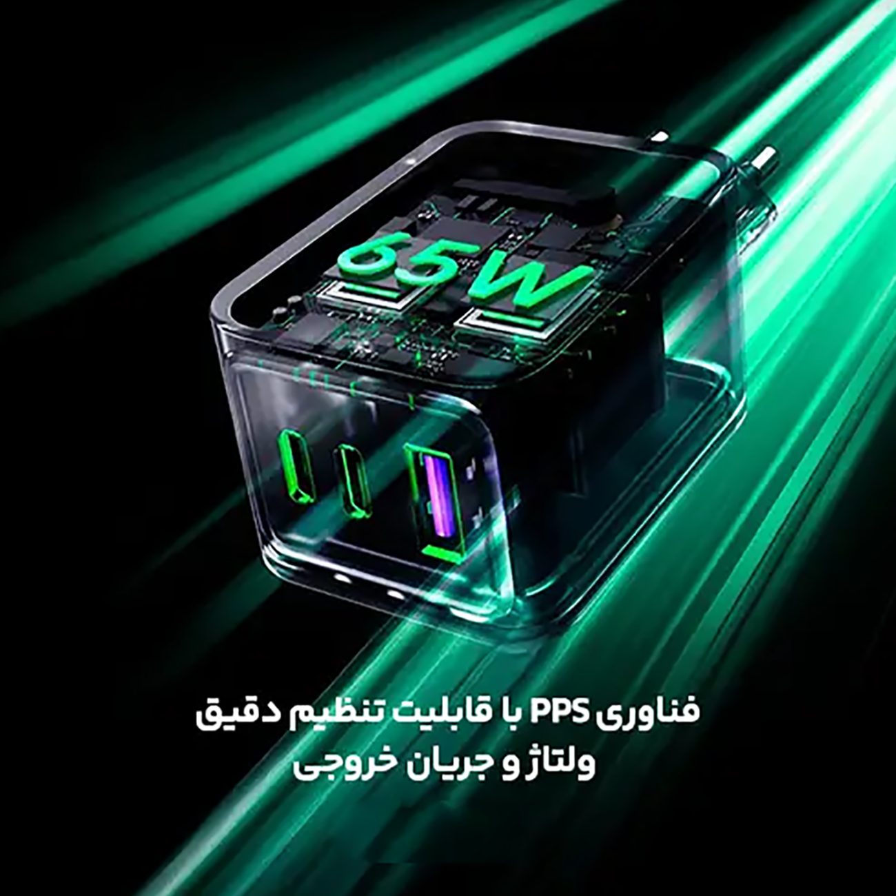 ولتاژ خروجی پورت USB-C1 / C2 | 12 ولت ⎓ 3 آمپر, 15 ولت ⎓ 3 آمپر, 20 ولت = 3.25 آمپر, 5 ولت ⎓ 3 آمپر, 9 ولت ⎓ 3 آمپر, حداکثر 65 وات |
