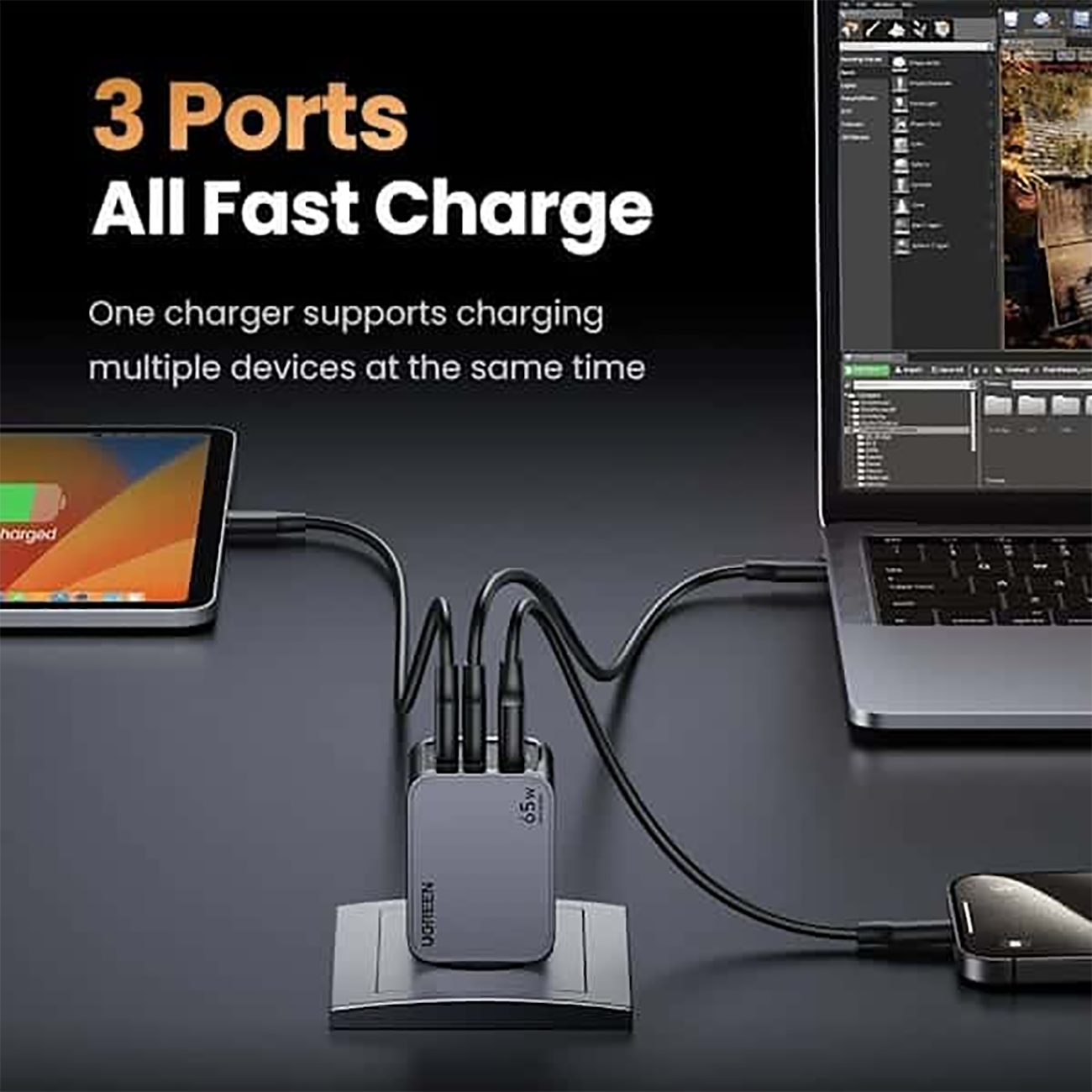 شارژر دیواری USB و تایپسی 65 وات یوگرین Ugreen X755 25871 با کابل تایپسی به تایپسی 5 آمپر