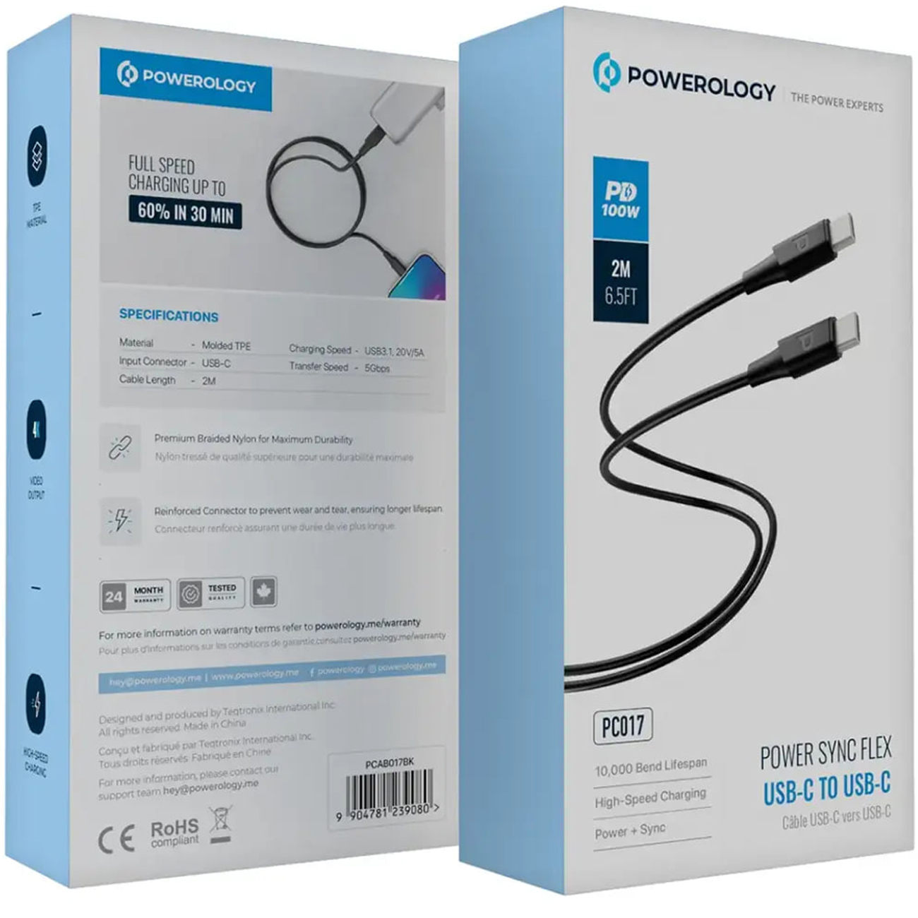 کابل شارژ تایپسی به تایپسی 100 وات 2 متری پاورولوژی Powerology PCAB017BK PC017