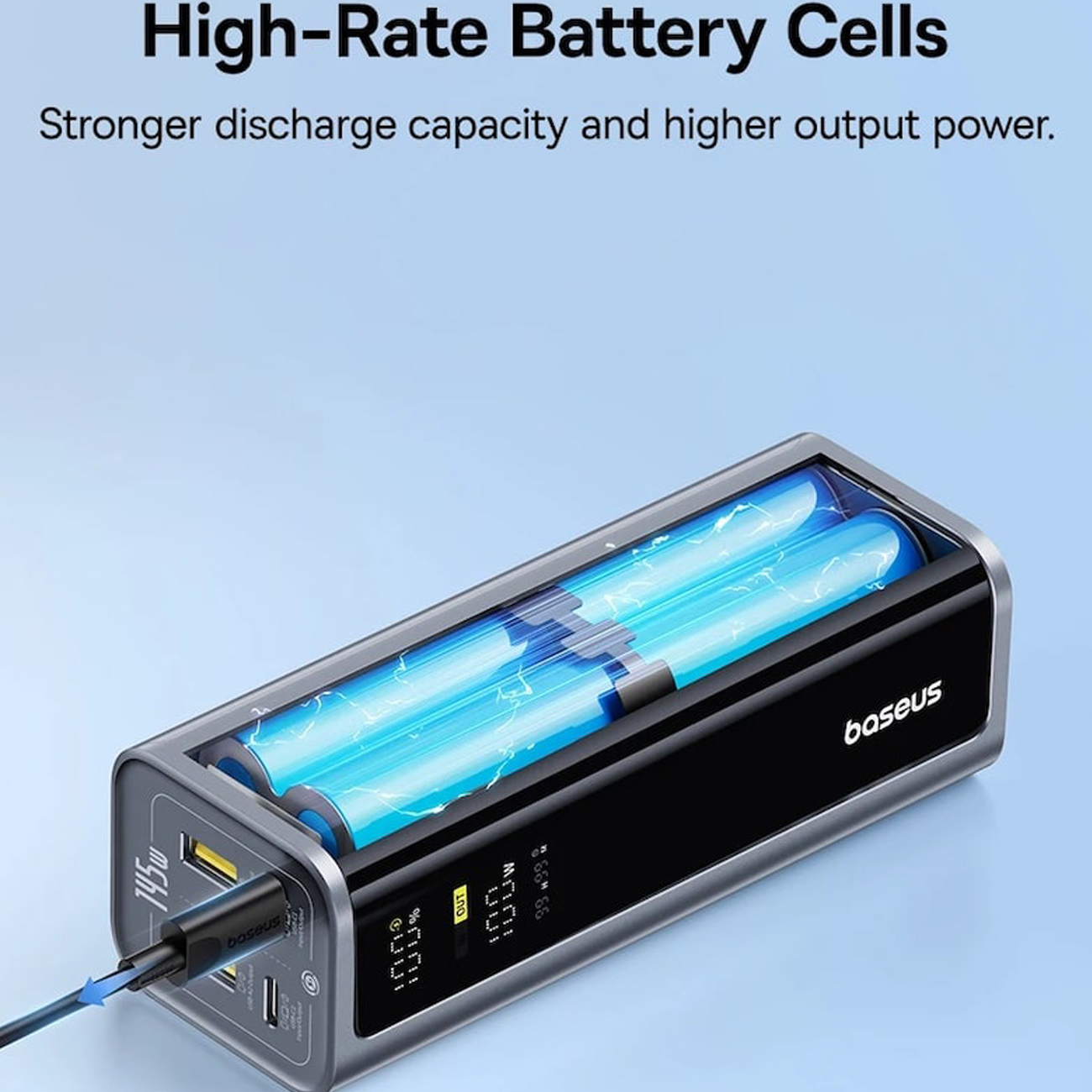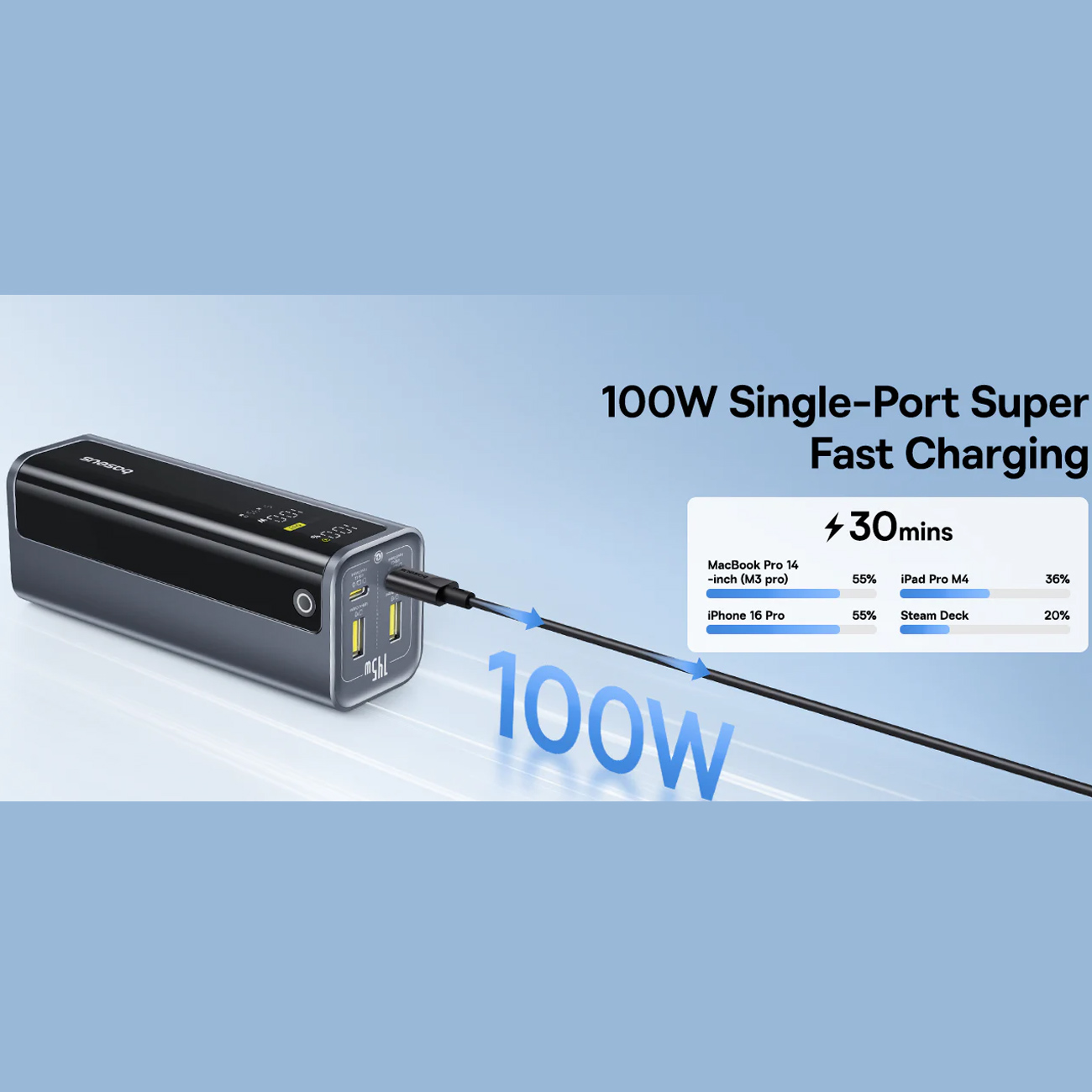 قابلیتهای ویژه | خروجی 100W تک پورت برای لپتاپ، ورودی 65W (شارژ کامل در 2 ساعت)، نمایش زمان باقیمانده، مدیریت هوشمند توان |