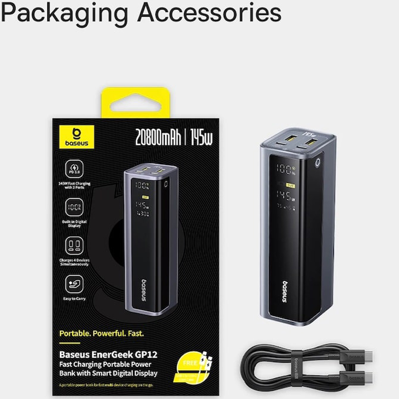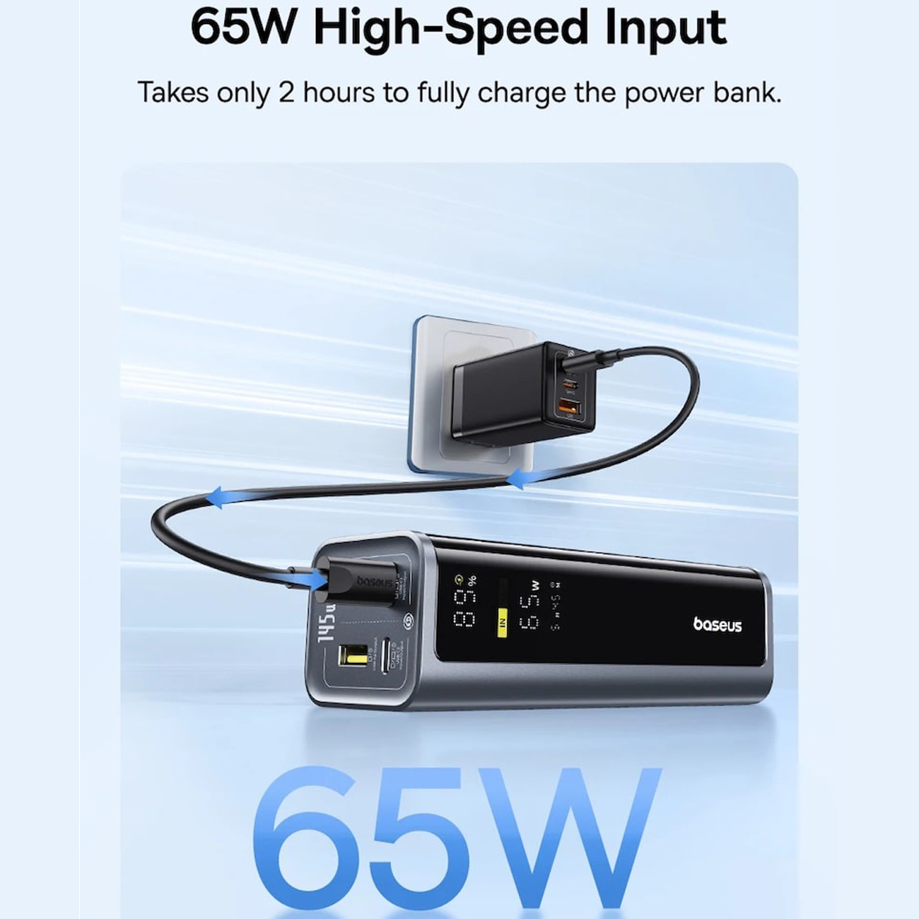 پاور بانک فستشارژ 20800 تایپسی و USB توان 145 وات بیسوس Baseus PPAP-20E5/P10082109813-00 با کابل دوسر تایپ سی