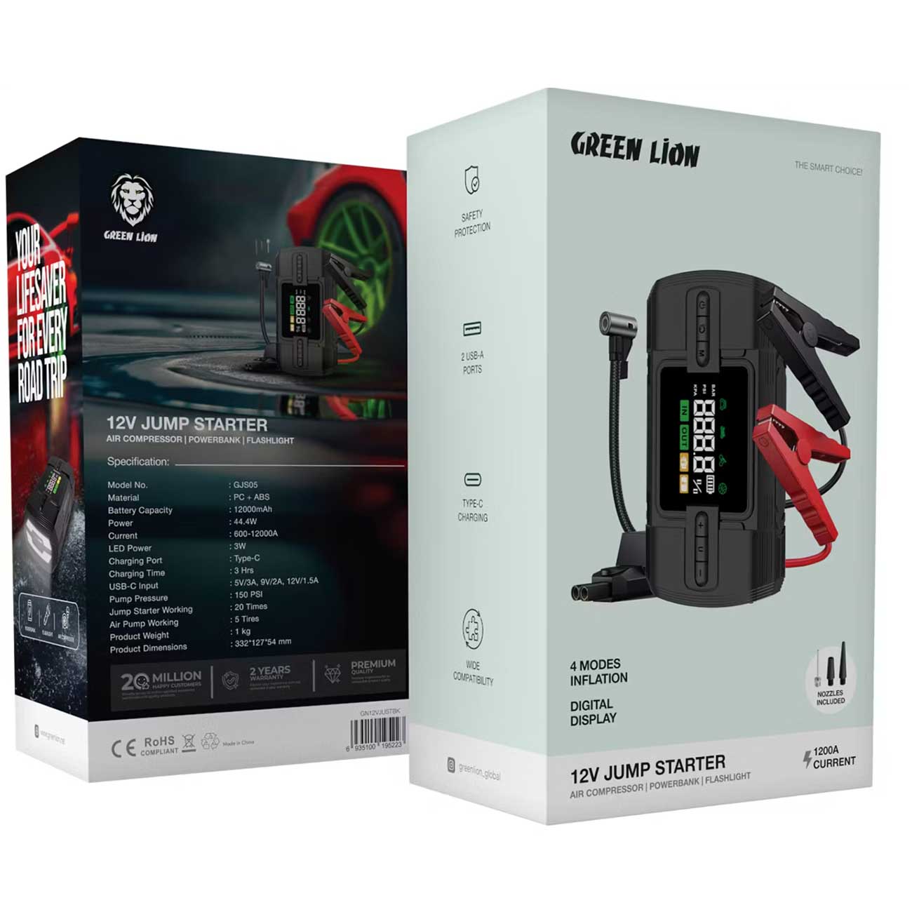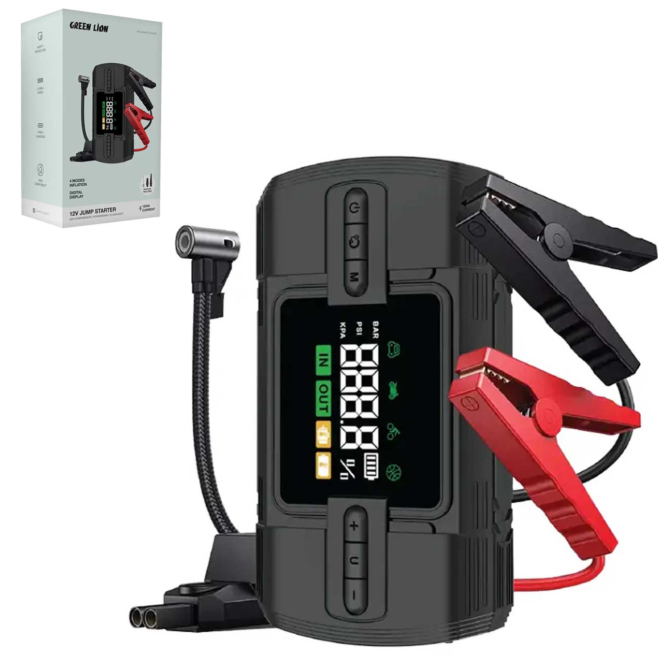 جامپ استارتر، پاوربانک 12000 میلیآمپر، پمپ باد و چراغ قوه گرینلاین Green Lion GJS05 GN12VJUSTBK