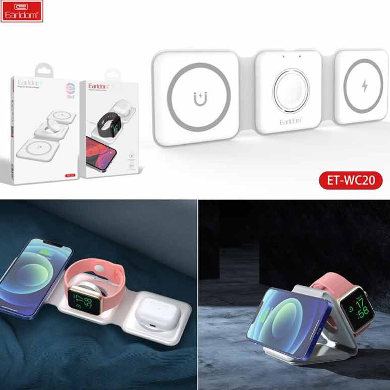 سازگار با | انواع گوشیهای هوشمند که از قابلیت شارژ وایرلس پشتیبانی میکنند، AirPods، Apple Watch، iPhone 12 و بالاتر با MagSafe |
