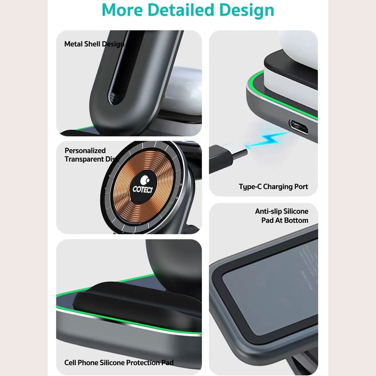 | سازگار با | ساعتهای سازگار: Apple Watch Series 2 Apple Watch Series 3 Apple Watch Series 4 Apple Watch Series 5 Apple Watch Series 6 Apple Watch Series 7 Apple Watch Series 8 Apple Watch Series 9 Apple Watch Ultra Apple Watch Ultra 2 Apple Watch SE (نسل 1) Apple Watch SE (نسل 2) ایرپادهای سازگار: AirPods Pro (نسل 1) با کیس MagSafe AirPods Pro (نسل 2) با کیس شارژ MagSafe USB-C یا Lightning AirPods Pro (نسل 2) با کیس شارژ Wireless استاندارد Qi AirPods 3rd Generation با کیس شارژ MagSafe AirPods 2nd Generation با کیس شارژ بیسیم (Qi) AirPods Wireless Charging Case (قاب وایرلس نسل قدیمیتر) گوشیهای اندرویدی مجهز به فناوری Qi گوشیهای آیفون سری 14، 15 و 16 |