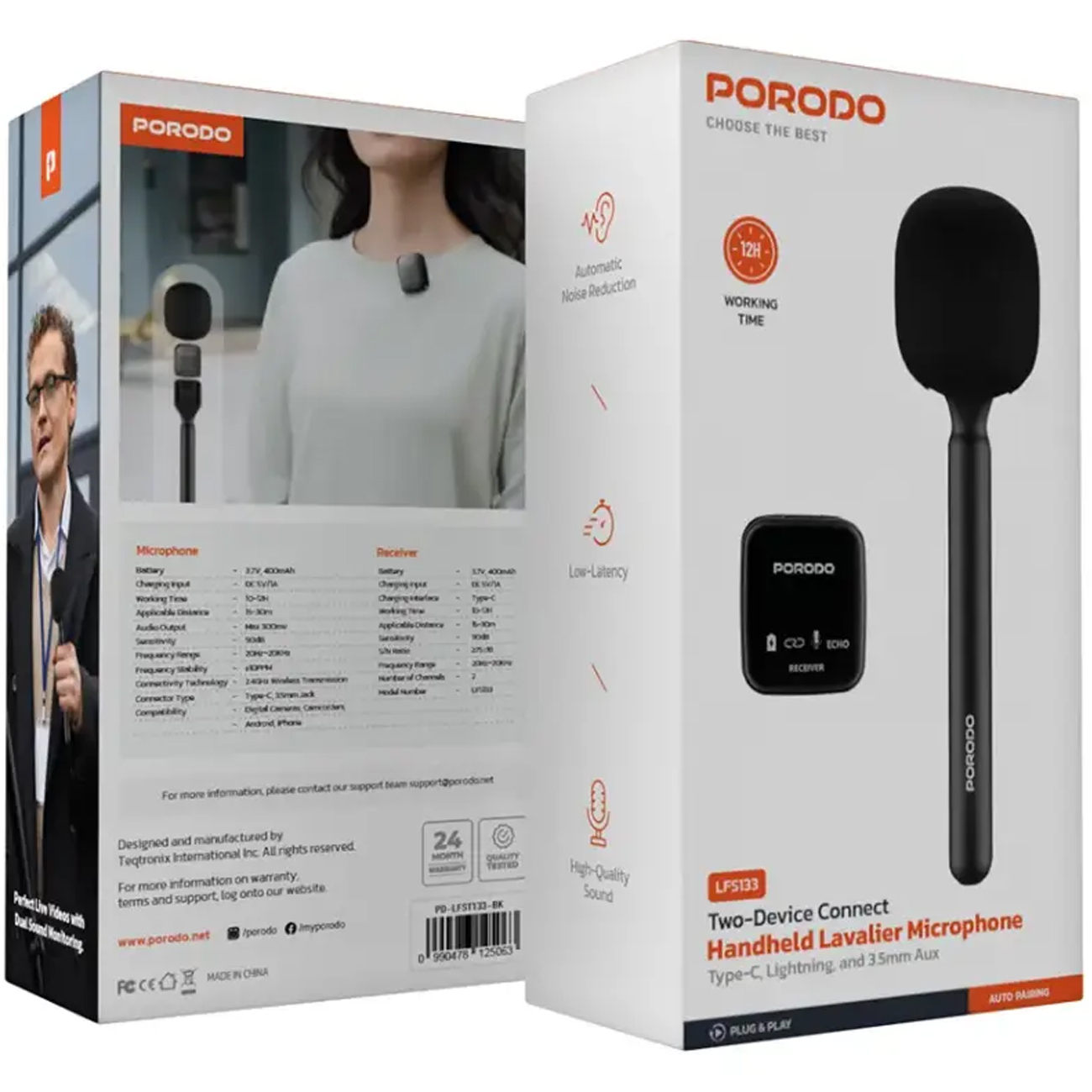 | محتویات بسته | میکروفون, گیرنده دو کاناله, کابل شارژ تایپسی, دفترچه راهنما |