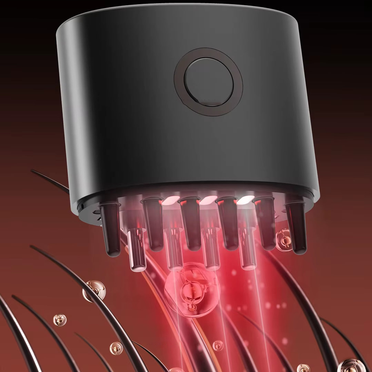 قابلیت ها | ماساژ پوست سر، توزیع یکنواخت سرم و محلول، نور درمانی قرمز و آبی |