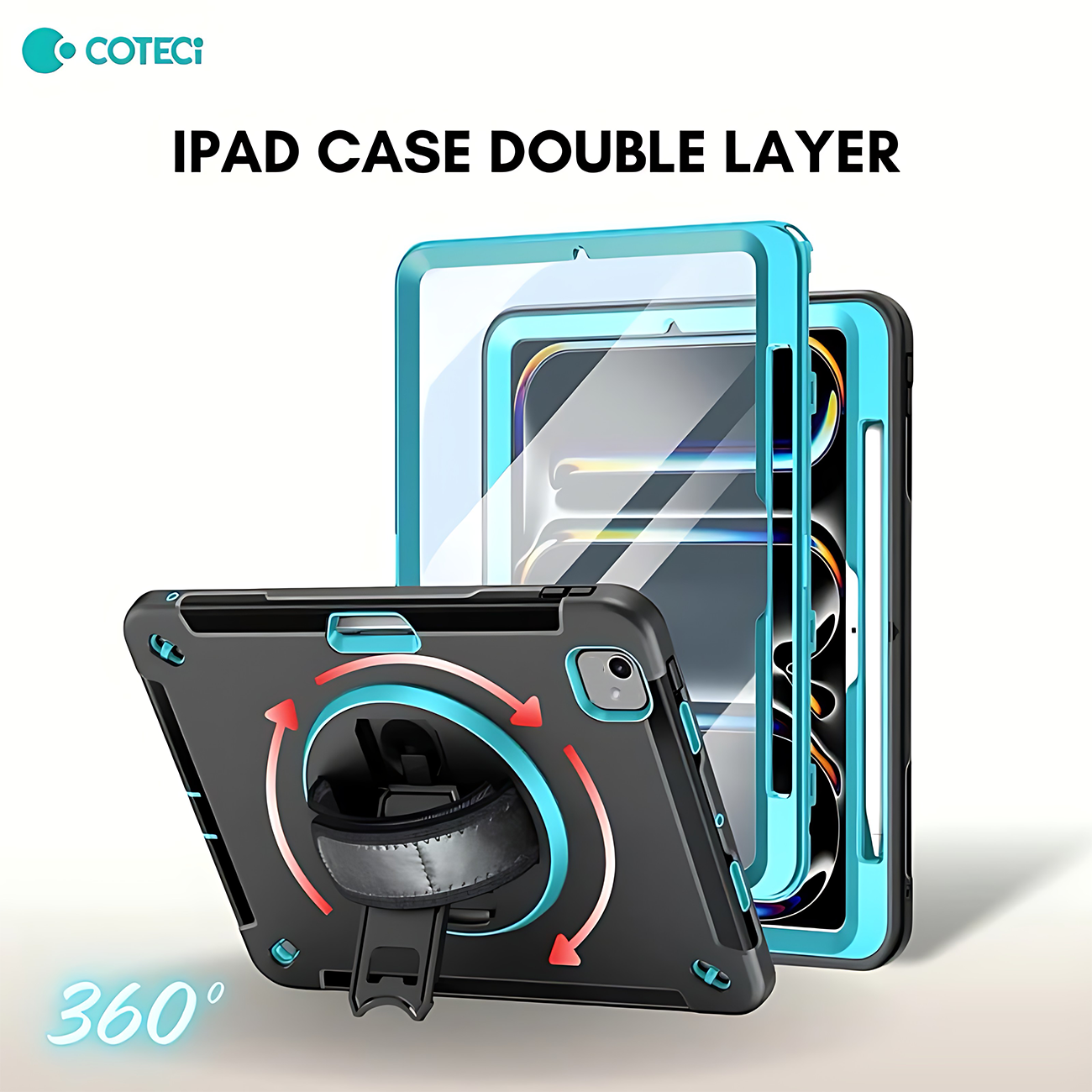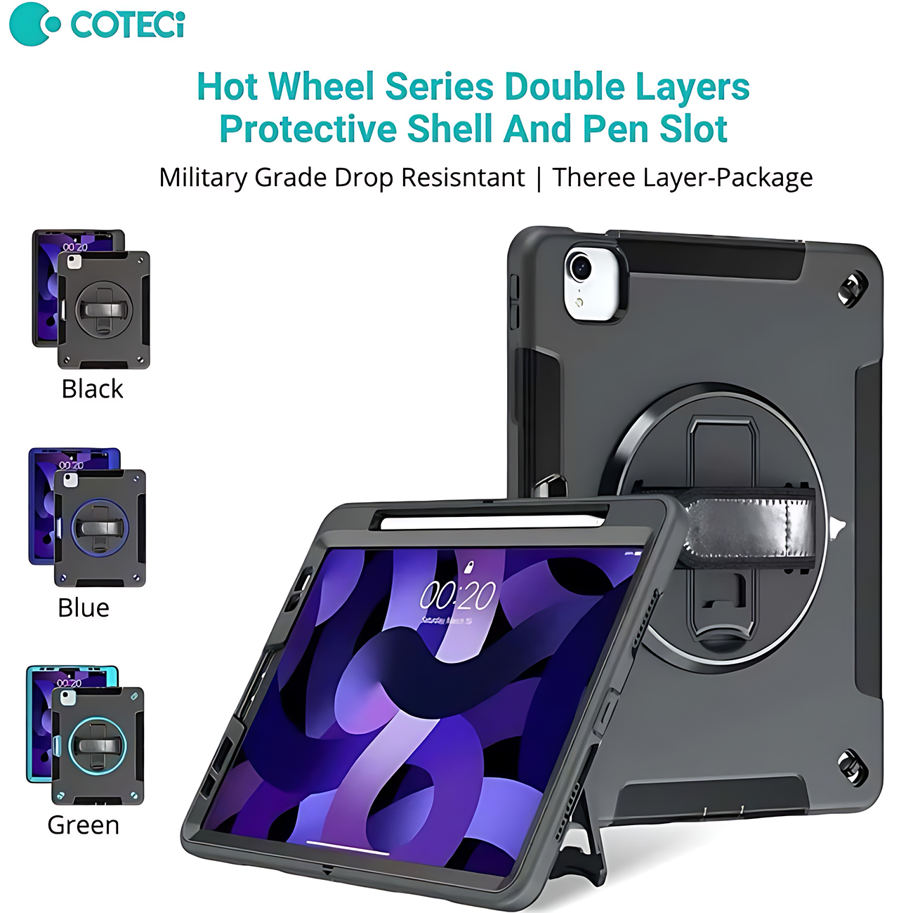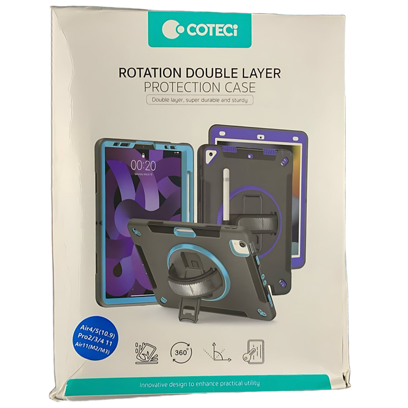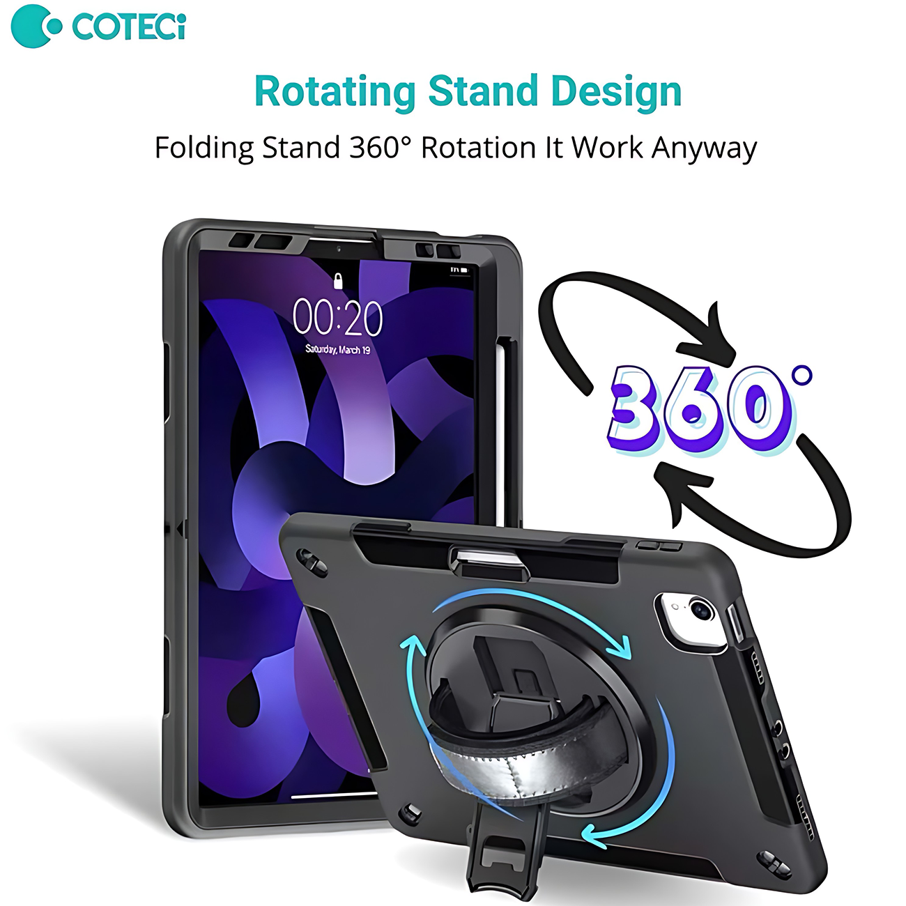 کاور محافظ آیپد ایر 10.9 اینچ (نسل 4 و 5)، آیپد پرو 11 اینچ (نسل 2، 3 و 4)، آیپد ایر 11 اینچ M2/M3 کوتسی iP-037 با پایه نگهدارنده چرخشی و بند دستی