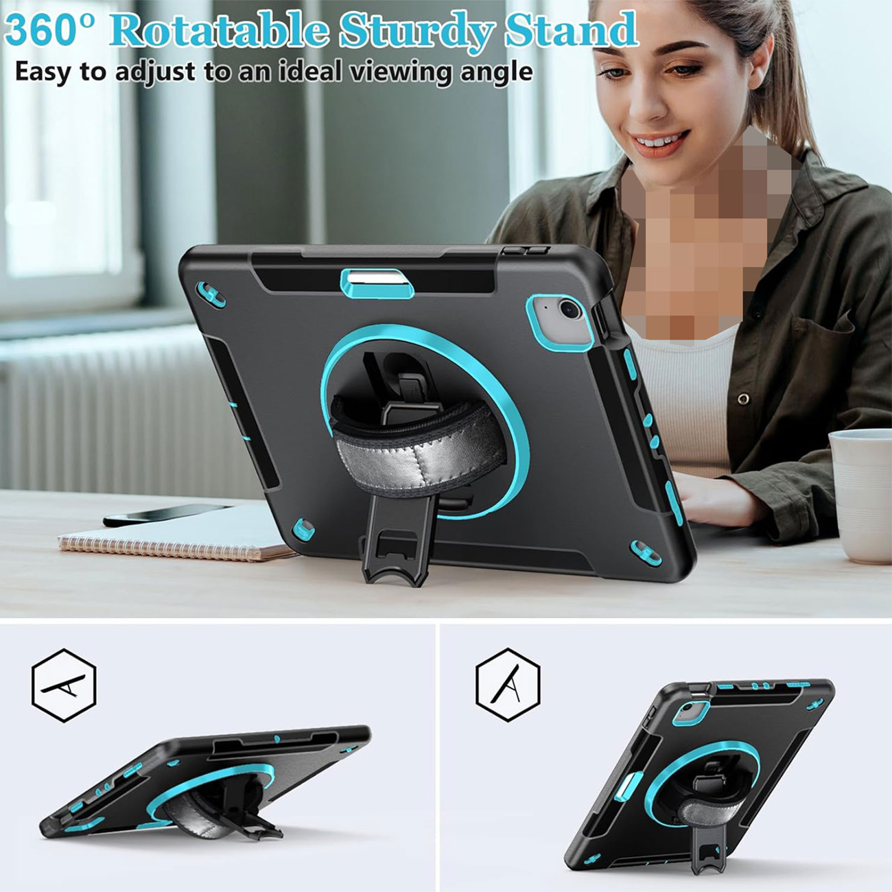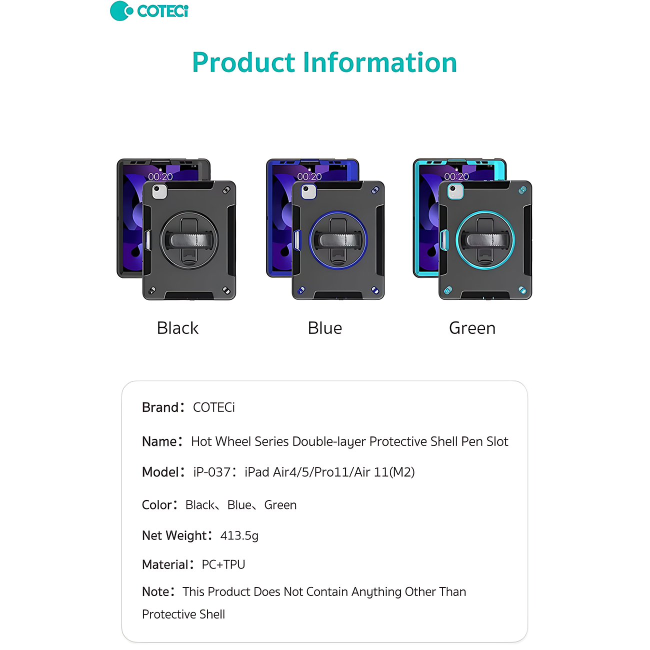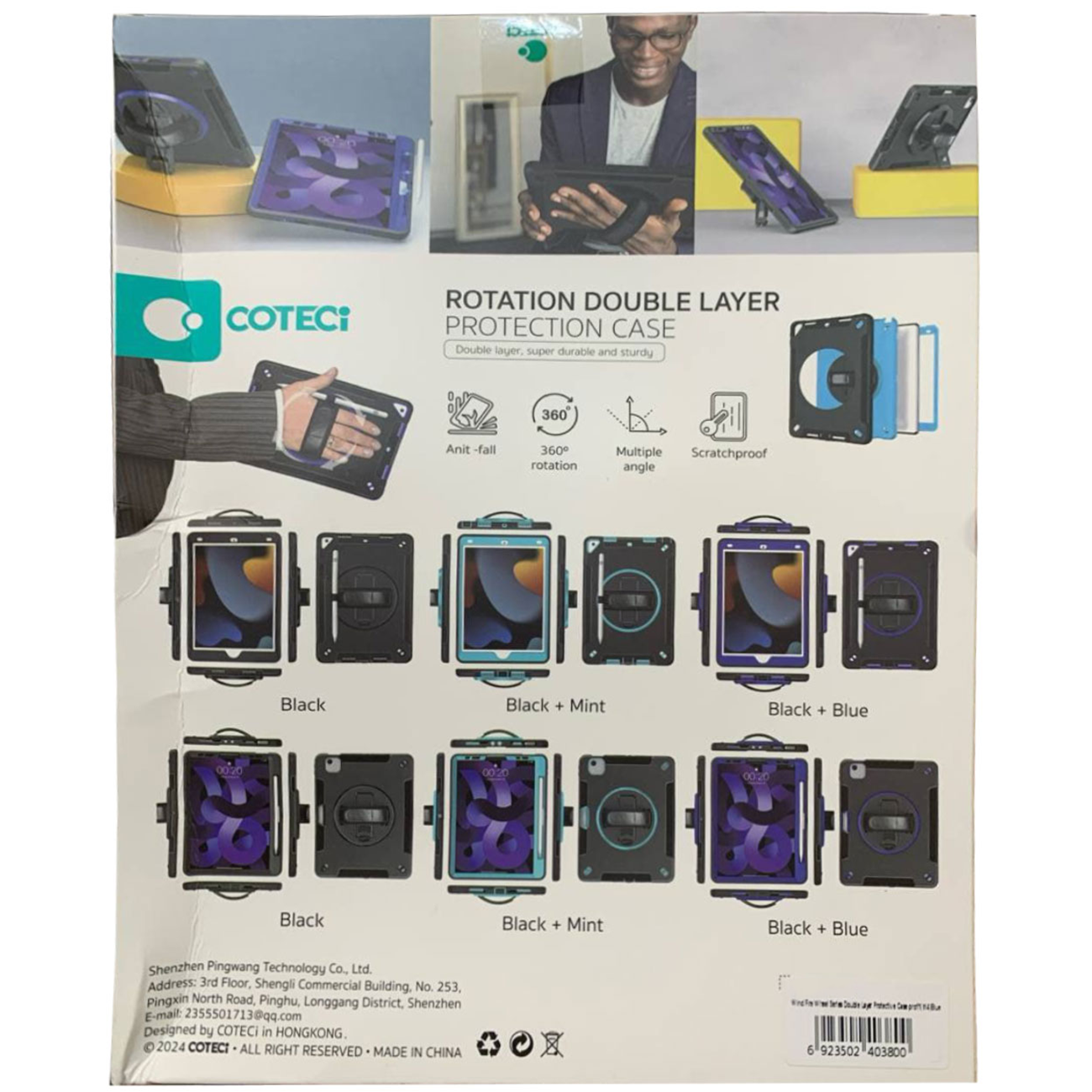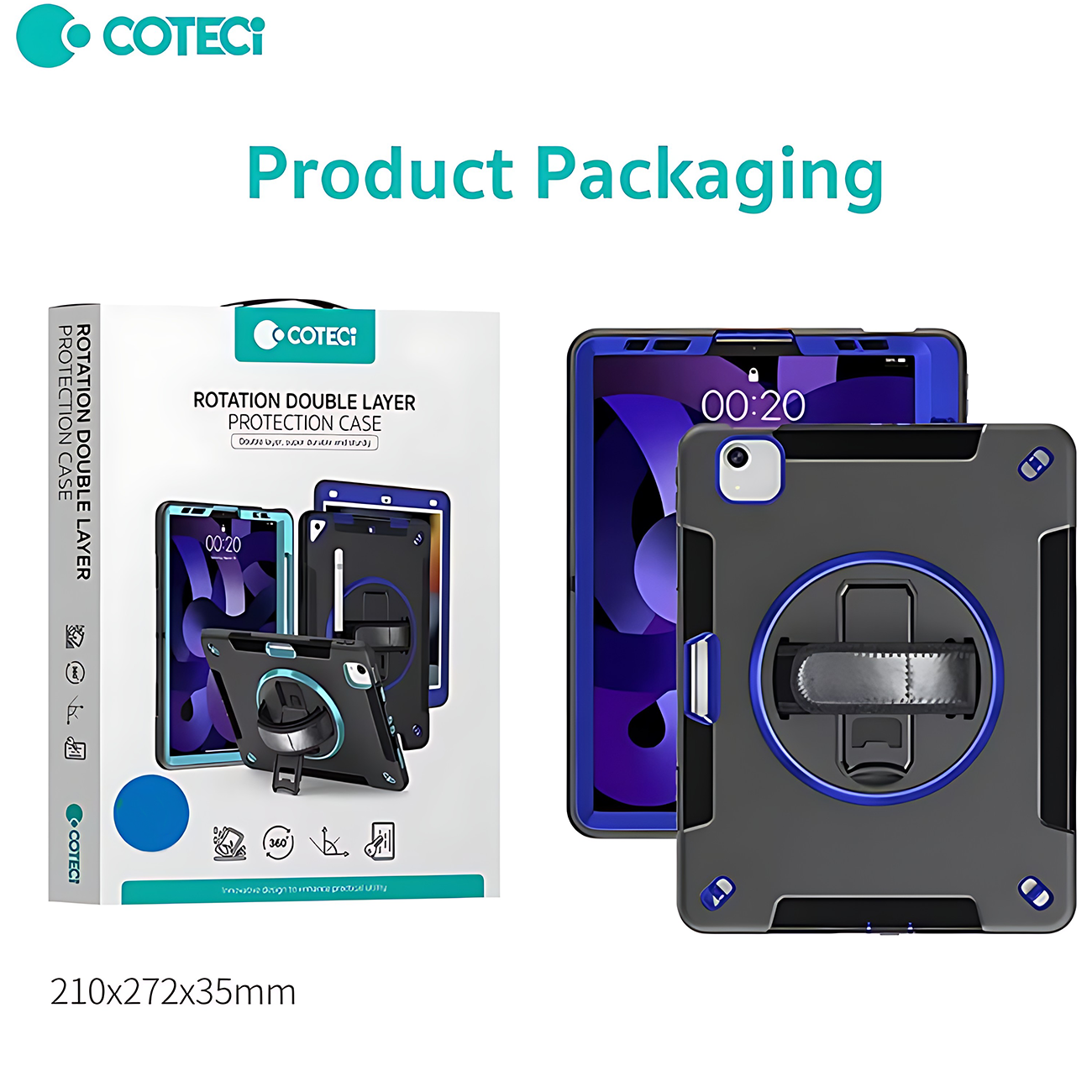 کاور محافظ آیپد ایر 10.9 اینچ (نسل 4 و 5)، آیپد پرو 11 اینچ (نسل 2، 3 و 4)، آیپد ایر 11 اینچ M2/M3 کوتسی iP-037 با پایه نگهدارنده چرخشی و بند دستی