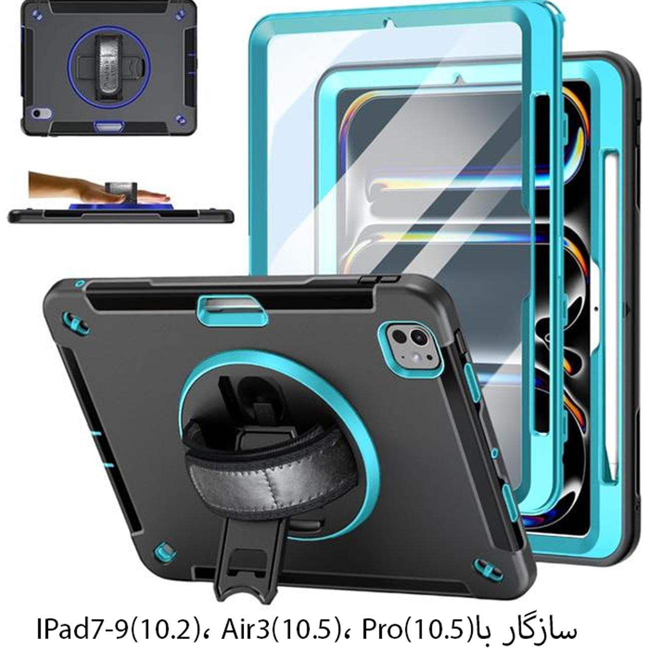 کاور آیپد آیپد 7-9 (10.2)، آیپد ایر 3 (10.5)، آیپد پرو (10.5) کوتسی IP-036 با پایه نگهدارنده چرخشی و بند دستی
