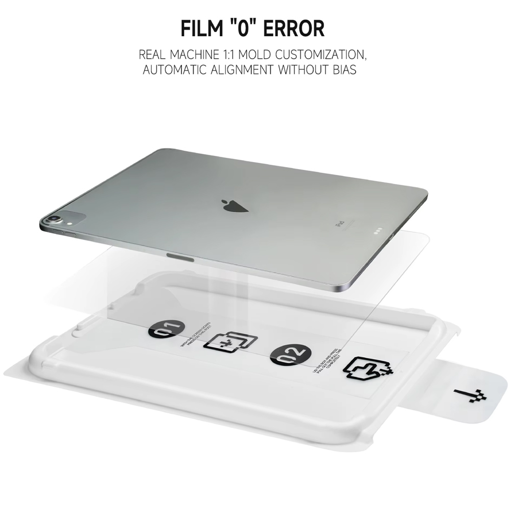 محافظ صفحه نمایش شیشه ای تبلت آیپد پرو 12.9 اینچ 2018/2023 همراه با کیت نصب Dust Free Box