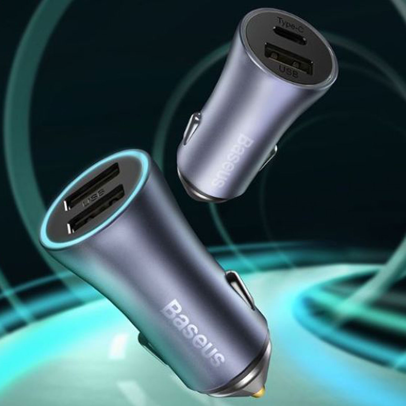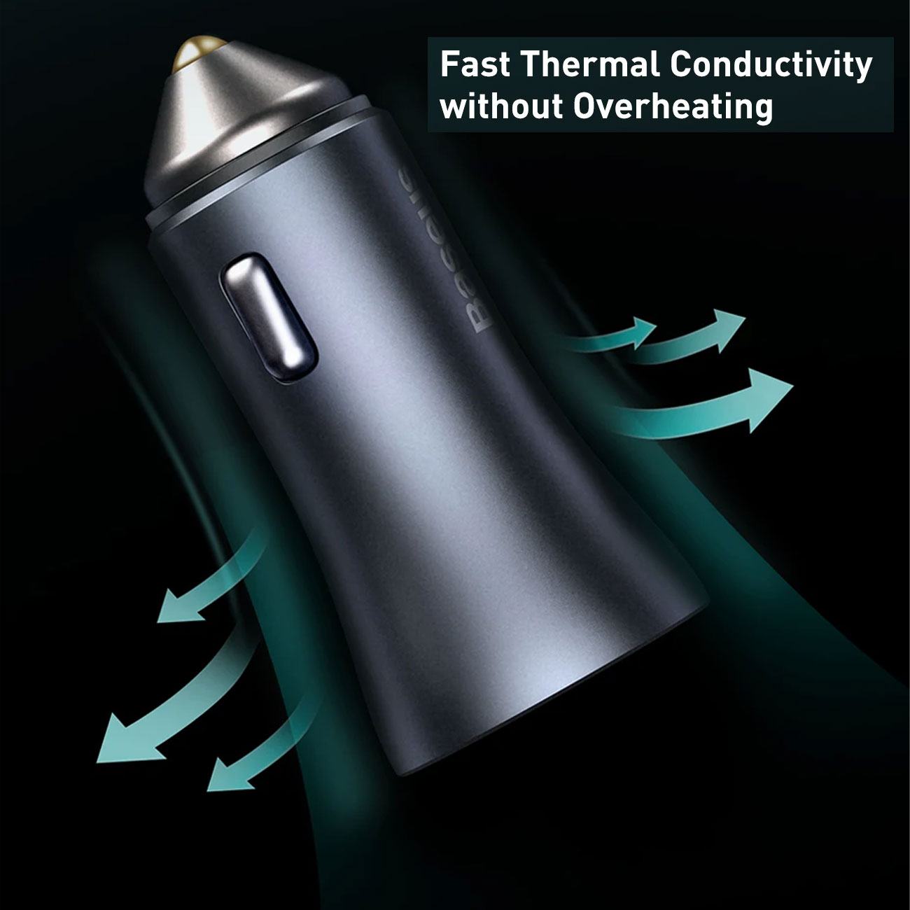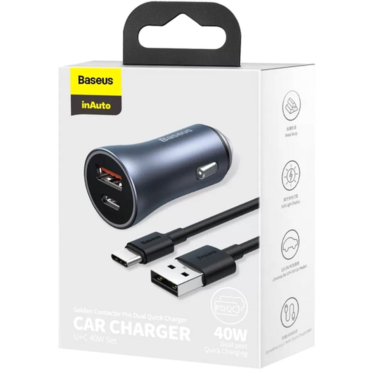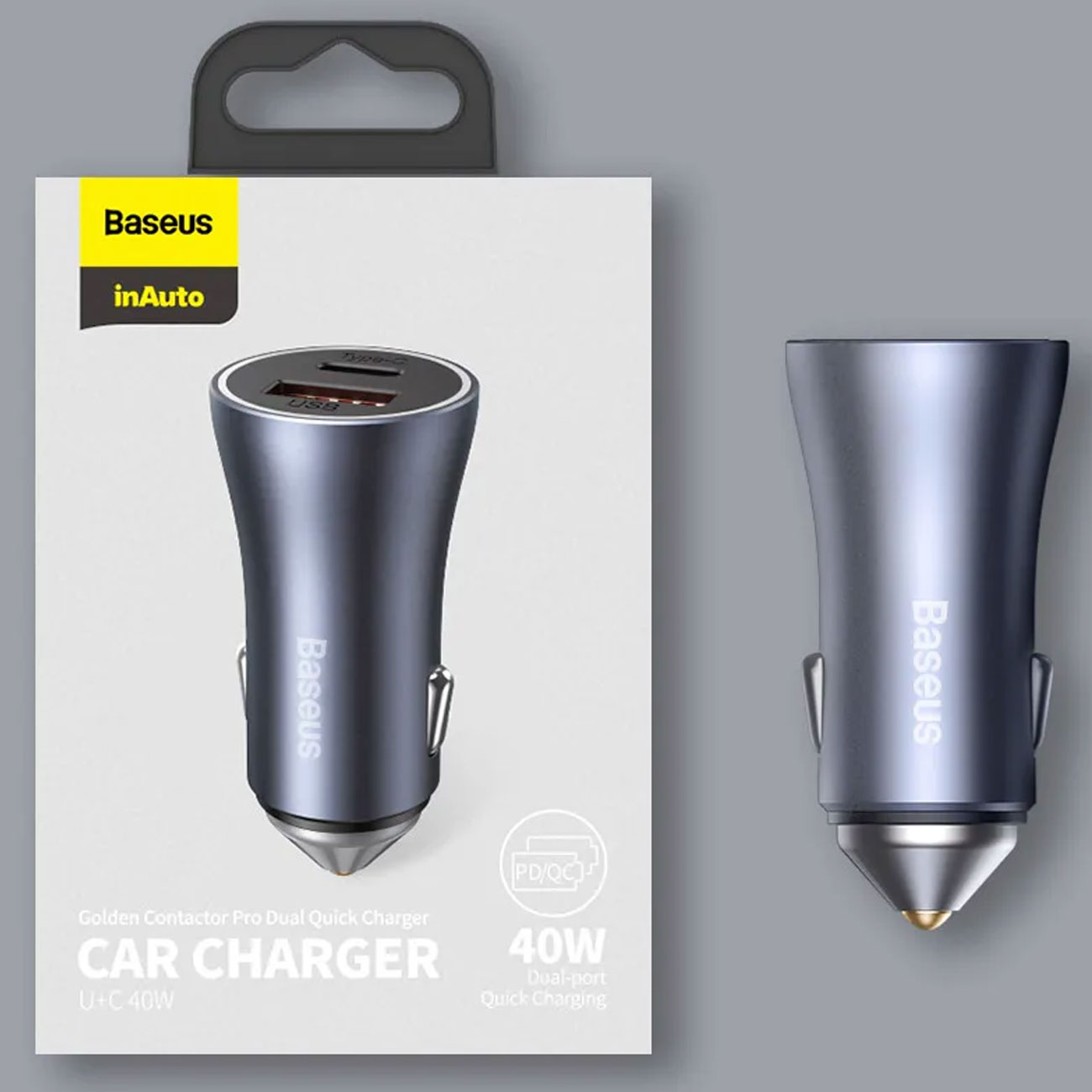 شارژر فندکی فست شارژ ماشین تایپسی 40 وات بیسوس TZCCJD-B0G با کابل تایپسی به لایتنینگ