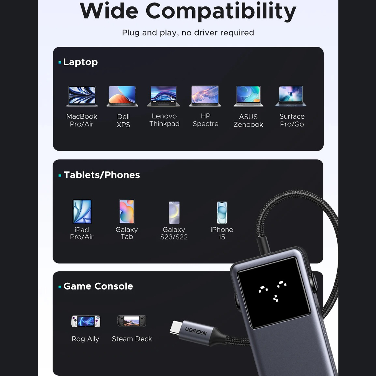 | دستگاههای سازگار | MacBook Pro/Air/M1/M2، iMac، iPad Pro، Chromebook، Surface، Dell XPS، ThinkPad، iPhone 16، Galaxy S23، ROG Ally، Steam Deck |