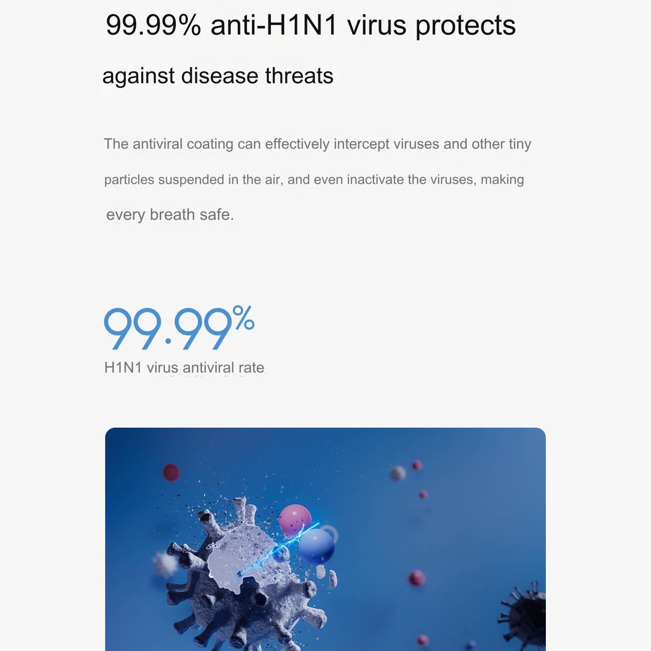 جنس | چندلایه (پیش فیلتر، لایه ضدویروسی، لایه نانو، لایه ضدباکتری، فیلتر با دقت بالا وکربن اکتیو) |
