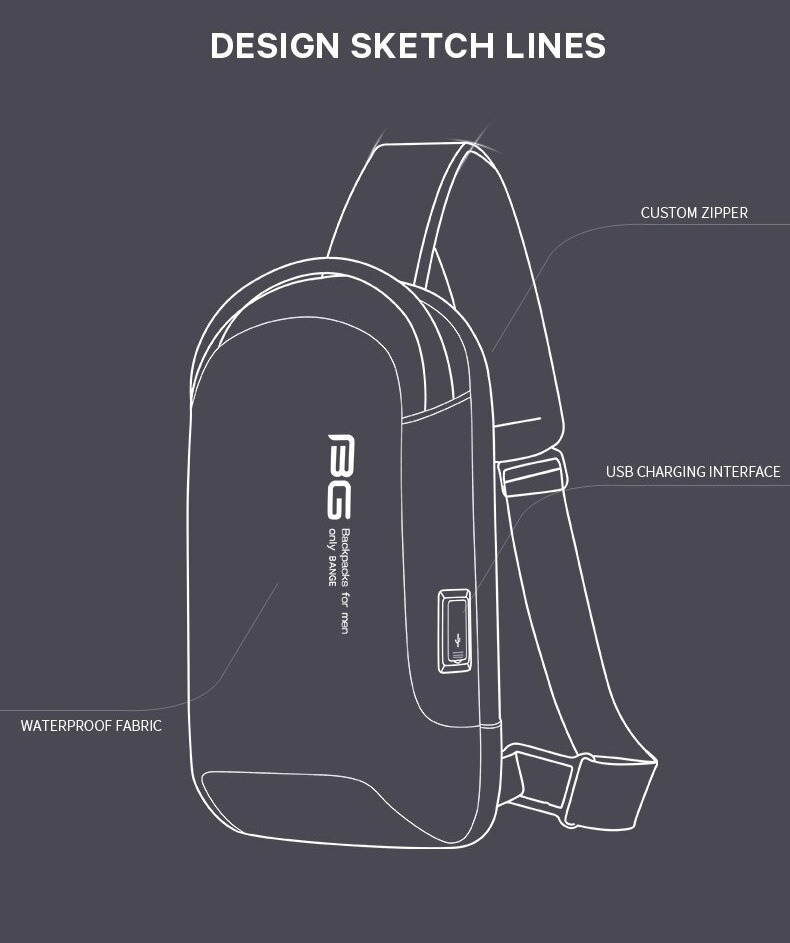 کوله تک بند حرفه ای ضد آب دارای USB بنج BANGE BG-7221 Men Bag Casual Business Messenger Cloth Bag