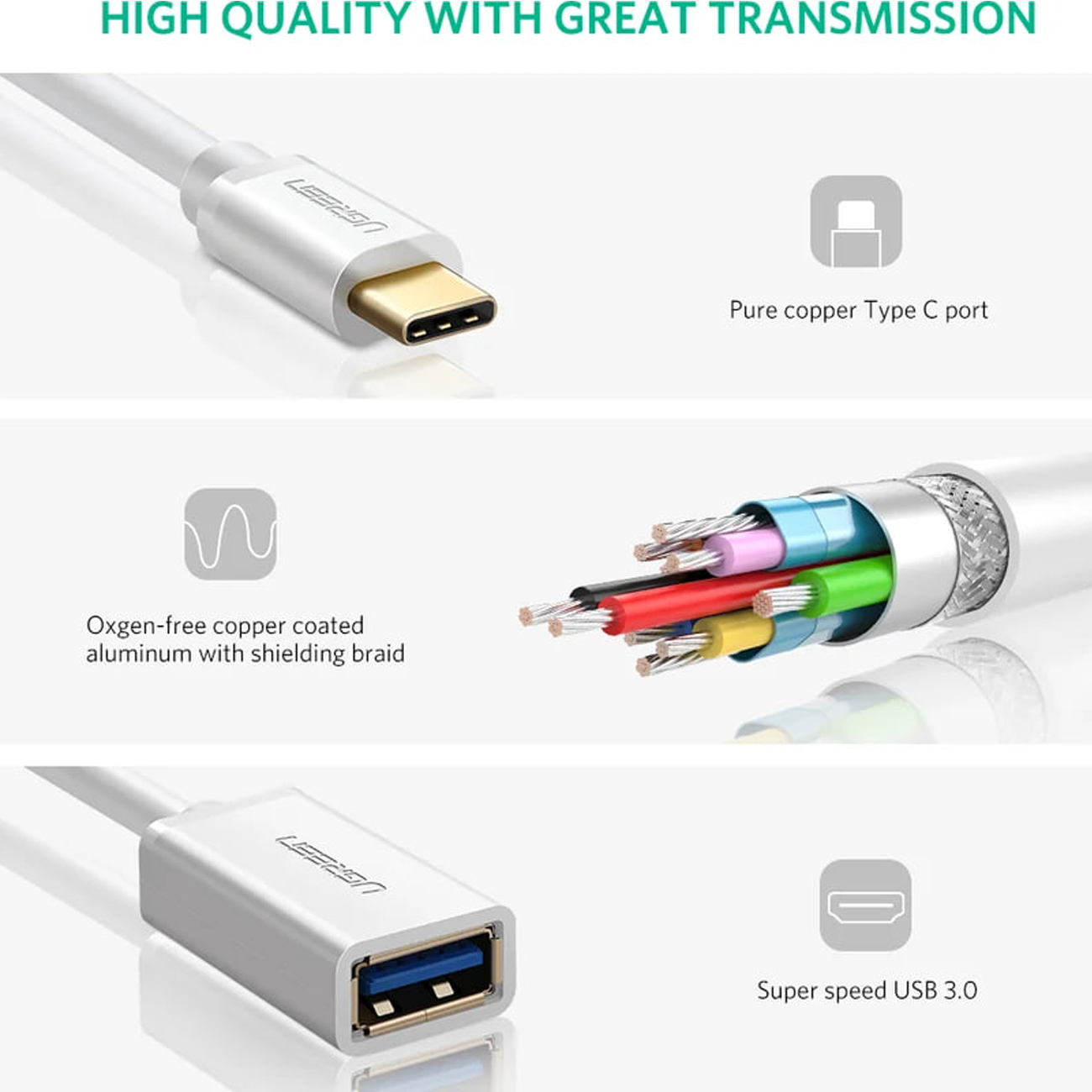 تبدیل اوتیجی تایپسی به USB3.0 15 سانتیمتری یوگرین Ugreen US154 30701
