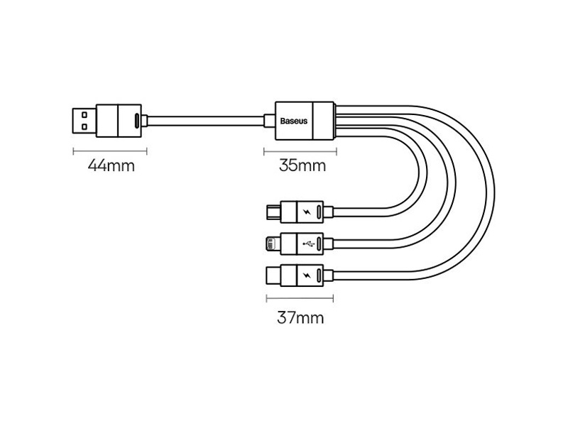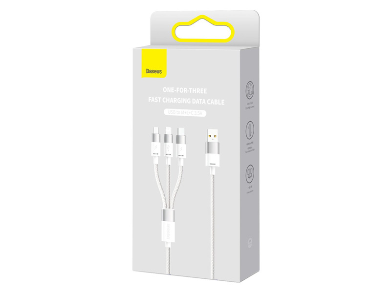 کابل شارژ سریع سه سر یو اس بی به تایپ سی، لایتنینگ و میکرو یو اس بی 3.5 آمپر 1.2 متری بیسوس Baseus Star Speed Fast Charging Data Cable CAXS000001