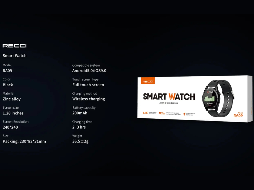 | سایر ویژگیها | پخش کننده موسیقی، اعلانهای پیام و تماس، کنترل شاتر دوربین از راه دور و غیره وضوح صفحه نمایش 240*240 پیکسل زمان شارژ 2 تا 3 ساعت حافظه داخلی 32 مگابایت |