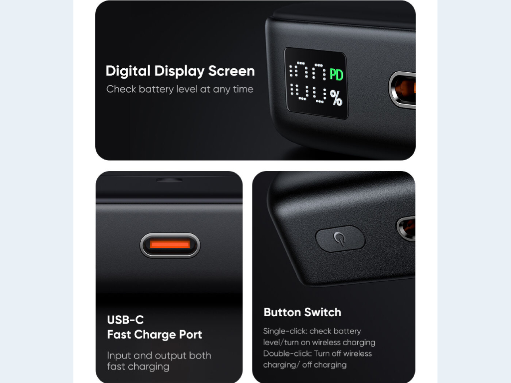 | توان خروجی | USB-C: 5V⎓3A, 9V⎓2.22A, 12V⎓1.67A Wireless: 15W/10W/7.5W/5W |