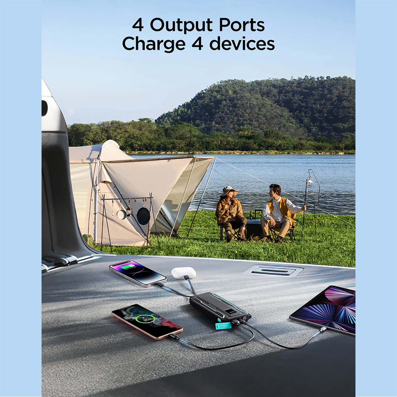 | توان خروجی | خروجی یو اس بی :4.5V=5A ، 5V=4.5A، 5V=3A، 9V=2A، 12V=1.5A خروجی نوع تایپ سی: 5V=3A، 9V=2.22A،12V=1.67A خروجی کابل تایپ سی: 4.5V=5A، 5V=4.5A، 5V=3A، 9V=2A، 12V=1.5A خروجی کابل لایتنینگ: 5V=2.4A |
