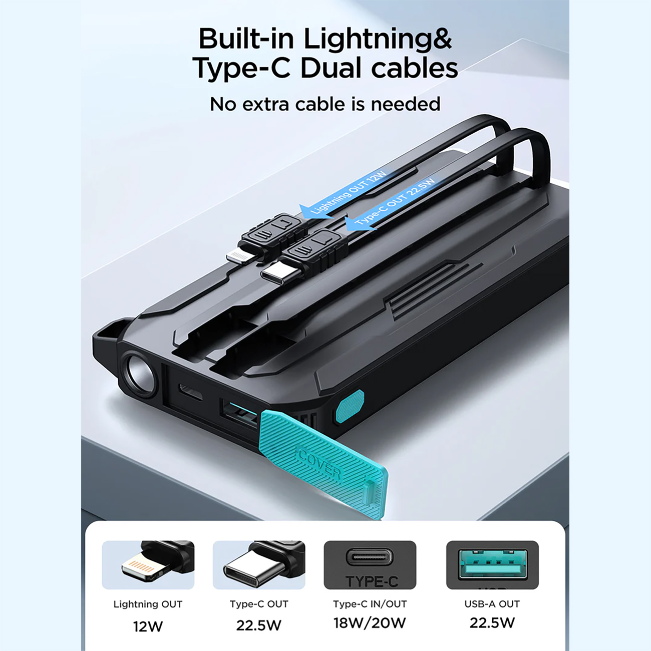 | قابلیتهای ویژه | شارژ ایمن با حفاظت چندگانه، دارای چراغ قوه، زنگ هشدار اضطراری SOS، کابل تایپ سی و لایتنینگ متصل به بدنه |