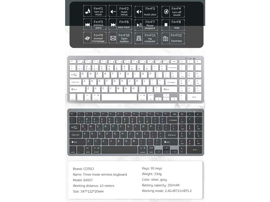 | مشخصات کیبورد بی سیم سه حالته کوتتسی | |