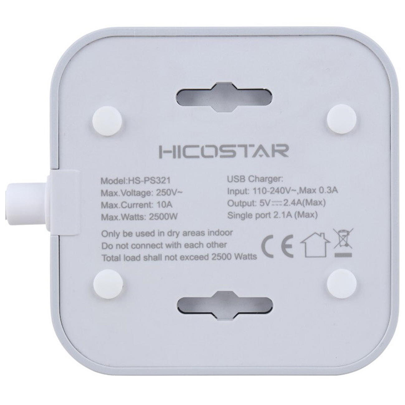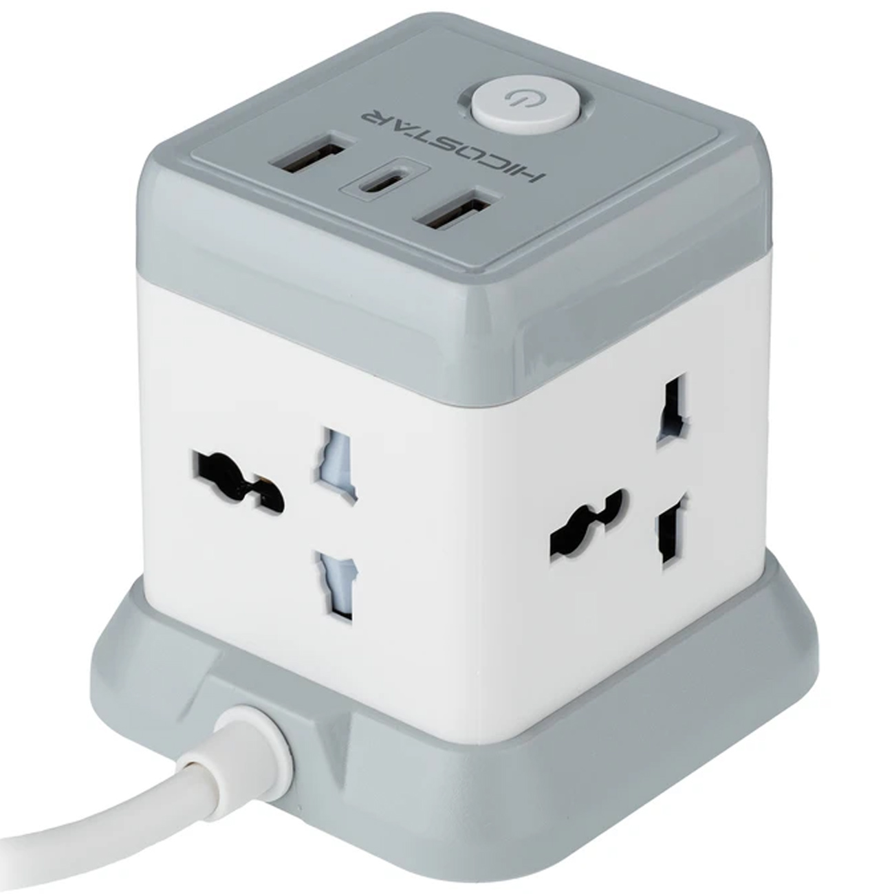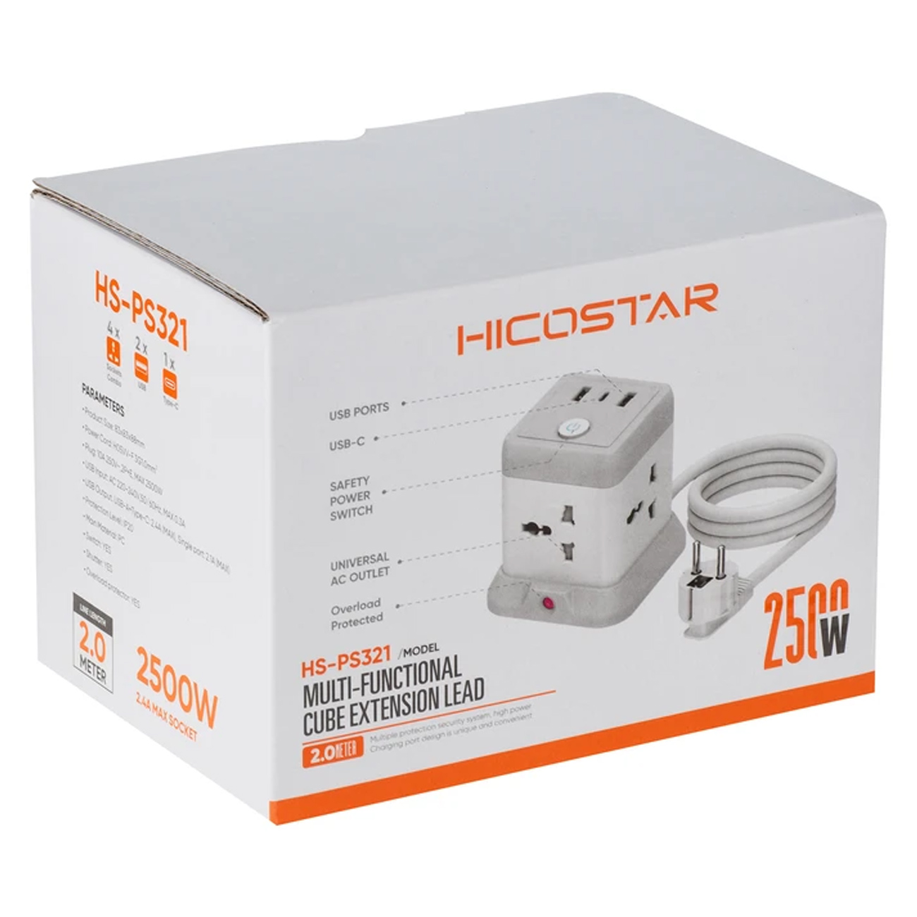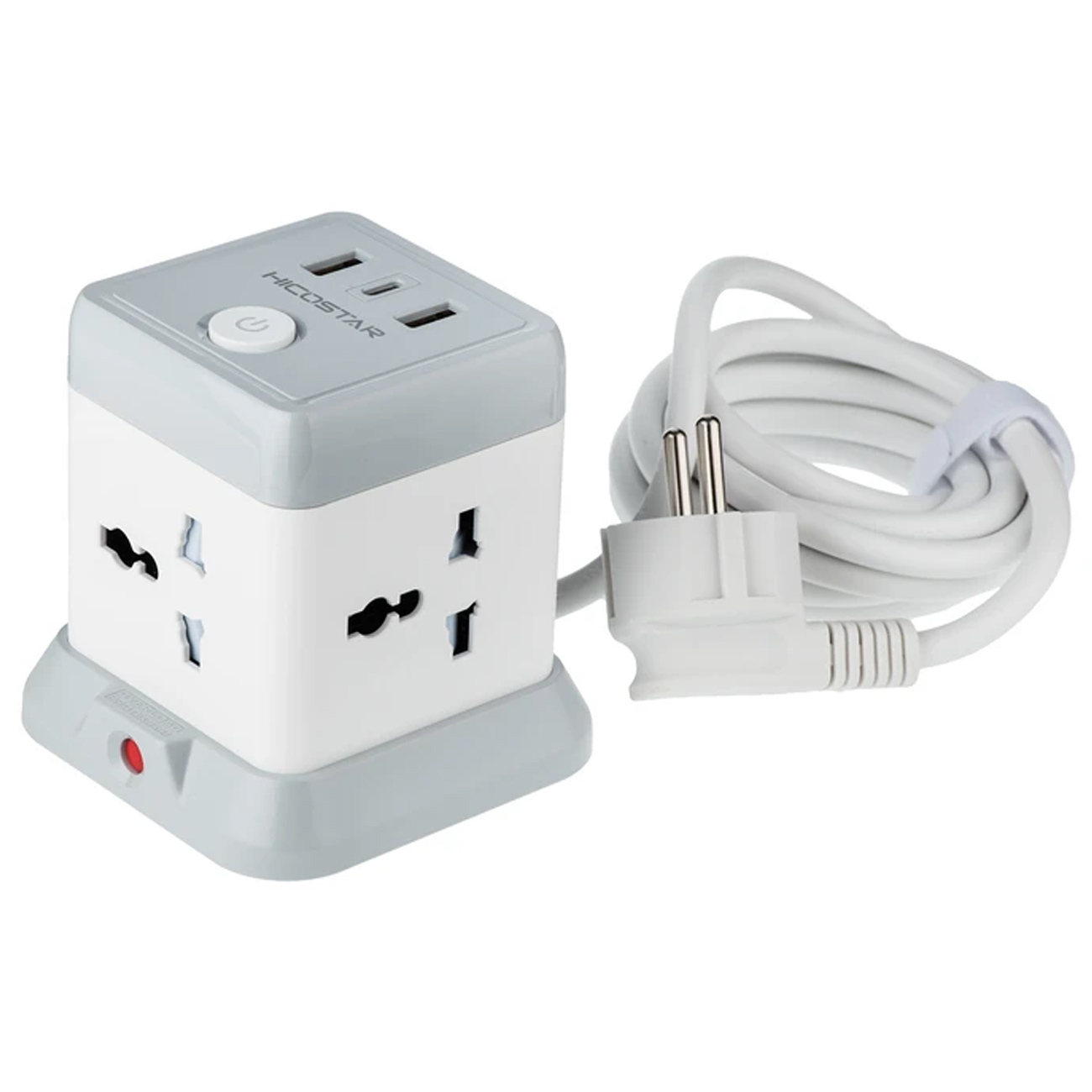 چندراهی برق 4 سوکت 2500 وات، دو USB و دو تایپ سی هایکو استار Hicostar HS-PS321 با کابل دومتری