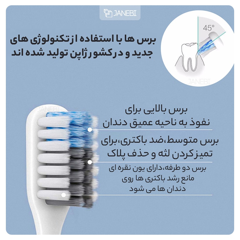 | استفاده از سه نوع برس متفاوت در مسواک | |